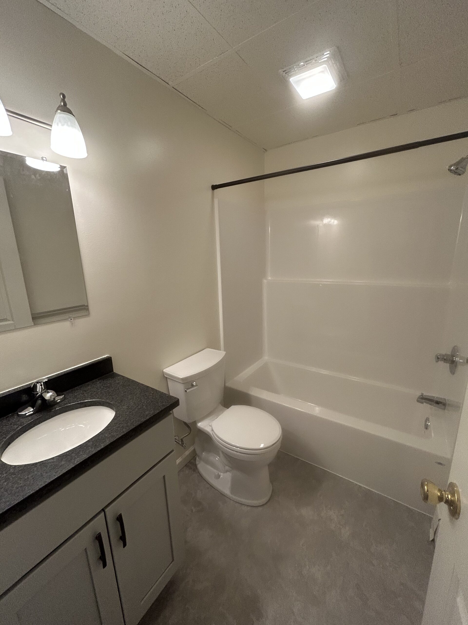 Across the hall, you’ll find a beautifully remodeled bathroom with a shower/tub combo, new vanity and countertops, and updated lighting.